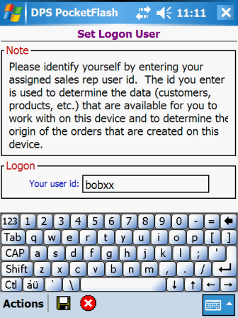 The entered user id must match the id of a predefined sales rep user on the server; however, the